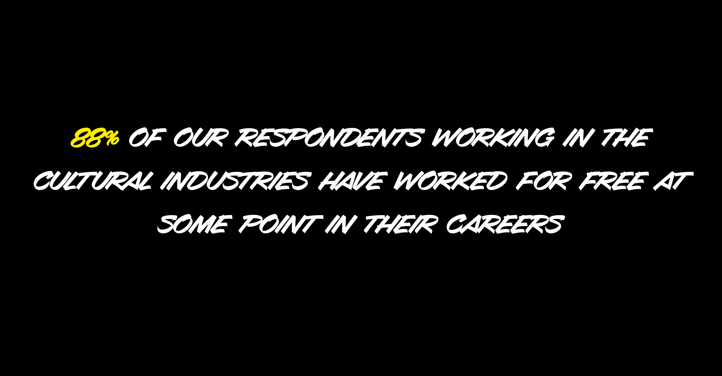 The survey also found that an overwhelming majority of respondents working in the arts (76%) had at least one parent working in a managerial or professional (i.e. ‘middle class’) job whilst they were growing up and that over half had at least one parent with a degree whilst growing up. When this is paired with the fact that nearly 90% of respondents had worked for free at some point in their career, the Panic! research paints a bleak picture that if young people don’t have parents that are able to support them in their pursuit of a creative career then it is an extremely hard to break into the industry.